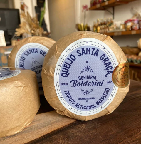 O Queijo Santa Graça Bolderini, produzido em São Paulo, é maturado por 30 dias, garantindo um sabor suave e levemente ácido, perfeito para quem aprecia queijos com personalidade delicada. Sua textura macia e elástica, protegida por uma película azul especial removível, harmoniza perfeitamente com cafés, doces e geleias. Uma experiência única que traz o melhor da tradição da Queijaria Bolderini para sua mesa.